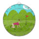 Retro Golfer Dart Board är mer roligt än en dag på gröntarna. 1960-talets stil, minimalistisk konstdesign är allt annat än en del av kursen. Den har en ensam golfer på en lush, gröntens farled. Den moderna golfen i mitten av århundradet skapar en riktig mode påstående i sin snyggt, plaid, golf byxor och fuchsia-skjorta. Den blond, passande, helg krigaren är på händer och knän som försöker ställa in ett skott. Eller så försöker han till ge vid boll ett nam i riktning mot hål. Spelar det någon verkligen? På hans sida ser vi en enda golf-klubb. Framför honom står det glupska hål, med en röd flagga, som skrämmer honom. Bakgrunden är en grönt av tecknad träd, ett akvaka himlar och två vita, njurbönformade moln. Den här designen kommer säkert att vara en hål i ett med dina favoritgolfproffs.