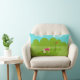Retro Golfer Lumbar Pillow är mer roligt än en dag på gröntarna. 1960-talets stil, minimalistisk konstdesign är allt annat än en del av kursen. Den har en ensam golfer på en lush, gröntens farled. Den moderna golfen i mitten av århundradet skapar en riktig mode påstående i sin snyggt, plaid, golf byxor och fuchsia-skjorta. Den blond, passande, helg krigaren är på händer och knän som försöker ställa in ett skott. Eller så försöker han till ge vid boll ett nam i riktning mot hål. Spelar det någon verkligen? På hans sida ser vi en enda golf-klubb. Framför honom står det glupska hål, med en röd flagga, som skrämmer honom. Bakgrunden är en grönt av tecknad träd, ett akvaka himlar och två vita, njurbönformade moln. Den motsatta sidan av roligten dekorativ kudde är grönt och kan vara personlig. Den här designen kommer säkert att vara en hål i ett med dina favoritgolfproffs.