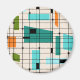 Retro Grid och Starbursts Round Magnet är där vintage stil möts i dag. Den har en gräddbakgrund med kitschy, off kilter-kvadrater och rektanglar i teal, turkos, Denna ljusblå färgad, orange och avokado-grönt. De vita blocken i färg är överlagrade och sammanfogas i några av rutnätssnitten. Det finns också svarta rektanglar där svart lodrät och vågrät linjer bildar ett rutnät mönster. Svarta stjärndesigner och fyrkanter placerade sporadiskt under detta halvsekel av moderna tapearkiv i färg. Ta av dig dina fallskärmar och klockor-grund och njut av det här till 1960-talet.
