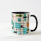 Detta Retro Grid och Starbursts Ringer Mugg är där vintage stil möter modern tid. Den har en gräddbakgrund med kitschy, off kilter-kvadrater och rektanglar i teal, turkos, Denna ljusblå färgad, orange och avokado-grönt. De vita blocken i färg är överlagrade och sammanfogas i några av rutnätssnitten. Det finns också svarta rektanglar där svart lodrät och vågrät linjer bildar ett rutnät mönster. Svarta stjärndesigner och fyrkanter placerade sporadiskt under detta halvsekel av moderna tapearkiv i färg. Ta av dig dina fallskärmar och klockor-grund och njut av det här till 1960-talet.