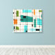Det här Retro Grid och Starbursts Wrapped Canvas är den dag då vintage stil sammanträder i dag. Den har en gräddbakgrund med kitschy, off kilter-kvadrater och rektanglar i teal, turkos, Denna ljusblå färgad, orange och avokado-grönt. De vita blocken i färg är överlagrade och sammanfogas i några av rutnätssnitten. Det finns också svarta rektanglar där svart lodrät och vågrät linjer bildar ett rutnät mönster. Svarta stjärndesigner och fyrkanter placerade sporadiskt under detta halvsekel av moderna tapearkiv i färg. Ta av dig dina fallskärmar och klockor-grund och njut av det här till 1960-talet.