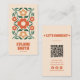Retro Grönt Orange QR Code Groovy Blommigt Roligt Visitkort