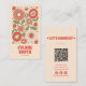 Retro Grönt Red QR Code Groovy Blommigt Funky Boho Visitkort