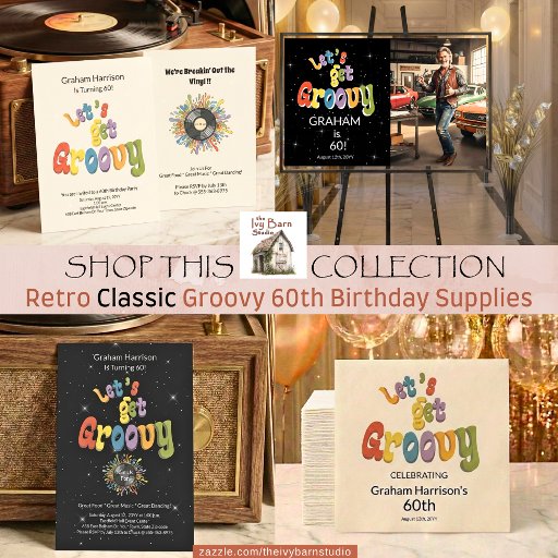 This will get guests excited to come to the 60th birthday party they are now invited to! Unique Retro Let's get Groovy design that's colorful and tasteful with the multi colored red, orange, blue, green, yellow on Black! On the back is a Retro Record Player and some "Cool Vibes" coming from it. The words below it promise great food, great music, and great dancing! Who wouldn't want that!?! Get excited and plan away!