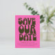 Retro Groovy 70-tal Fet Rosa och Mörkgrön Spara Datum Brevkort
