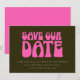 Retro Groovy 70-tal Hot Pink och Grön Bröllopskort Spara Datumet
