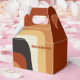 Den här groovy retro-erbjudandeboxen vågigt linjer i brun, brun och orange, som påminner om 70-talet och hippie-livsstil. Fet vintage-mottagningsfack med funkyns vita skript av parets namn bredvid abstraktens böjda linjer. Groove tillsammans med den här roligtens jordtonskonstruktion.