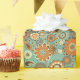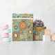 Retro Groovy blommigt papper med 70 och 60 stil i orange, kräm och blått trendig färg