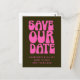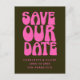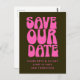 Retro Groovy 70-talets Shock rosa och Mörk grönt Spara datumvykortet