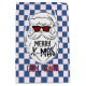 Retro Groovy Blue Checkered Santa Claus Christmas