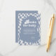 Ett vidrigt och groovt sätt att begära en speciell keepy för den nya ankomsten! Det här återinspirerade djurutrymmeskortet "Bokar för Baby" har ett trendig som kontrolleras mönster i en dammig blå och vit palett för färg. Den flytande, organiska formen i mitten innehåller en uppriktig begäran om att gästerna ska ta med sig ett bok i stället för ett kort, vilket uppmuntrar dem att underteckna insidan och lägga till en personlig anteckning. Texten "Bokar för baby" är skriven på en lekfull, vågigt teckensnitt som fångar en nostalgisk 70-talsvbe. Det här kortet är perfekten för att lägga till en unik och personlig beröring till en barnduschinbjudan som skapar ett bestående minne för både föräldrar och baby. Bokar för baby, babydusch, inhägnadskort, retro, groovy, schackbräde, 70-tal, vintage, dammiga blå, blå babydusch, begäran från bok, ta med ett bok, babydusch, duschkort, pojke, flicka, neutralt babydusch, unik babydusch, zazzle, anpassningsbar, redigerbar, mall, digital, utskrift, bokar för baby för baby för-kort. Groovy babydusch, retro, retro babydusch