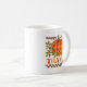 Retro groovy stil färglöst Thanksgiving kaffe mugg. Elegantens återställer typsnitt "Happy thanksgiving", med söta blommor, stjärnor och en incheckad daisy.