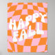Retro Groovy Checkered Rosa and Orange Fall Wall Poster..