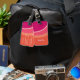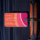 Abstrakt modern rand-färgformgivning i nyans med rosa och orange med personlig namn i ett retroteckensnitt. Det anpassade namnet har en skugga i ett kontrasterande färg för en 3D-effekt på roligten 1970s. Reverse har plats för all information du vill ha - lägg till allt du vill ha och lämna av allt du inte vill ha. Bon Voyage!