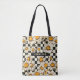 Retro Groovy Daisy Checkerboard Personlig Namn Tote bags har en groovy daisy mönster på en svart och vit schackbrädesbakgrund i mönster med anpassningsbarnas text eller personlig namn i mitten. Perfekt som en gåva till familj och vänner inför jul, födelsedag, helgdagar, Mors dag, arbetskolleger och annat. Skapat av ©Evco Studio www.zazzle.com/store/evcostudio