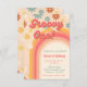 Solrossoluppgång med 70-talets baby-tema första födelsedagsfest med bildande mönster daisy-blomma, lägg till ditt namn på grund för att göra den till din egen.