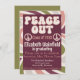 En rolig examensinbjudan för den som inte kan vänta med att ta studenten Med en funkig teckensnitt och fredstecken kommer den garanterat bli ihågkommen på den roliga retro-examensfesten.