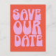 Retro Groovy 70-tal Färgrik Rosa och Orange Spara Datum Postkort