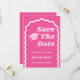 Gratulerar till det kommande studenten med att spara datumkortet i Retro! Den här besparingen av datumkortet är både elegant och djärv och har ett retrotypsnitt som transporterar gäster tillbaka till 70-talet, medan den vågigt matrisen tillför lite roligt och upphetsning. Shock rosa bakgrund är säker på att fånga allas öga, medan det rosan och vita teckensnittet tillför lite elegans. Student-sockeln tillför utformningen en aning sofistikering, skapar perfekten för både högskole- och högskoleelever i studenter. Ordna nu och låt gräddarna flöda!