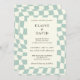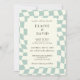 Retro Groovy Grönt Checkerboard Bröllop Inbjudningar