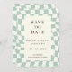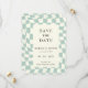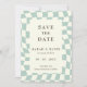 Retro Groovy Grönt Checkerboard Bröllop spara datum