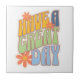 Retro Groovy "Have a Great Day" Floral Kakelplatta