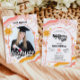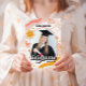 Fira din examen med stil med vårt retro groovy-inbjudningskort! Den rosa och orangea blommiga designen, komplett med ett personligt foto och anpassad text i klassisk scriptfont, gör det till ett perfekt val för din speciella dag. Visa upp din prestation med sofistikation och personlig touch.