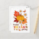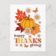 Färgkort för Retro Groovy stil färgad hälsning. Elegantens återställer typsnitt "Happy thanksgiving" med söta blommor av daisy, fjärilar, höst löv och en pumpa. Kortet innehåller ett underbart budskap från hälsning längst bak som kan vara personlig.