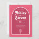 Den här fotobröllopsinbjudan utstrålar 70-talets anda, med dess program för magenta och rosa färg. Den fångar kärnan av 70-årsåldern med sina retro stil och livfulla nyanser. På framsidan av inbjudan visas en bågdesign tillsammans med personligens text, medan baksidan innehåller en återblomma mönster och ett foto av paret. Omslagsbilden har designat med resurser från Freepik.com