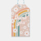 Retro Groovy One Boho Första födelsedagen Presentetikett