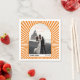 Denna förtjusande pappra napkin från Tack är perfekt för de par som vill ge lite vintage till sin speciella dag. Dess muntra palett med orange och vitt med groova solstrålar kommer att ge liv åt 1970-talets anda. Den bågformade designen och fotot skapar, tillsammans med snyggtens återbildsteckensnitt, ett unikt och öga-infångande utseende.