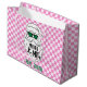 Retro Groovy Pink Checkered Santa Claus Christmas Large Gift Bag.