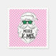 Retro Groovy Pink Checkered Santa Claus Christmas Napkins.