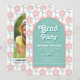 Denna inbjudan inspireras av 70-talets funky vibes, med en trevlig kombination av rosa och färg. Inbjudan är i centrum en akvaträda som på ett vackert sätt ramar personligens text. Bakom bågen tillfogar en charmig mönster av återblommor i rosa och akvblått en lekfull och snyggt inslag. Texten "Grad party" visas på en framträdande plats i ett fet stil, med ett litet personlighetsmått. På inbjudningens baksida hittar du ett foto av student i bågen som skapar en sentimental och minnesvärd keepsaké. Samma blommönster fortsätter på baksidan och binder samman hela designen. Få redot att växa och fira denna speciella milstolpe i stil!