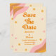 Retro Groovy Rosa och Guld Wave Bröllop Spara Datumet
