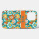 I roligt har fodral en vintage på 60- och 70-talen inspirerad blommigtens bakgrund i orange, teal, aqua, gult och vitt. Lägg till initialer för att anpassa det. Gör en underbar gåva till vem som helst. Skapat av Farmhouse Press.