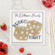 De här party-servetterna i anpassningsbar har ett sofistikerat och glamoröst natttema för spel. En stor bild av guld glitter Dice placeras i mitten. Det är perfekt för nästa bunco-turnering. En exempelfamilj namn skrivs ut överst och du kan anpassa den så att den innehåller ditt eget namn eller egen text.