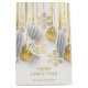 Julpresentinslag med namn och Merry Christmas-hälsning i chic skrivstil med en design av retro-silver- och guldpynt och snöflingor. MATCHANDE artiklar i vår kollektion.