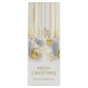 Julens vinkiftpresentförpackningar med ditt namn och Merry Christmas-hälsning i chic skrivstil med en design av retro-silver- och guldfärgade dekorationer och snöflingor. Alla storlekar på påsar är färdiga åt dig och MATCHANDE föremål i vår kollektion.