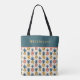 Den här charmerande väskan har stiliserad ananas i rosa och guld, med löv för tealgrönt. Överdelen av båda sidorna är blockerad i färg i samma grönt med guld-bokstäver för ditt monogram namn eller initialer. Bakgrunden är en vintage kräm färg.