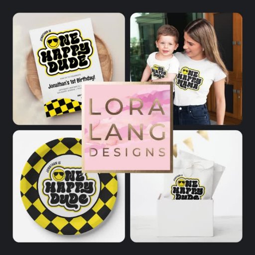 Yellow & Black One Happy Dude Birthday CollectionDesignad av Lora Langowski