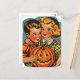 Retro Halloween Boy and Girl med Jack-o-Lantern Vykort