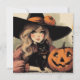 Retro Halloween Witch med Black Cat och Pumpkin Kort