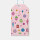 Retro Hand-Drawn jul Ornament Pastel Rosa Presentetikett