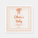 Retro Hand Drawn Orang Bow Gingham Baby Shower Pappersservett