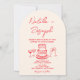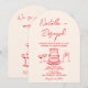 Retro Hand Drawn Red Cake Unique Arched Wedding Inbjudningar