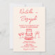 Retro Hand Drawn Red Cake Unique QR Code Wedding Inbjudningar