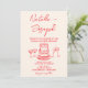 Retro Hand Drawn Red Unique QR Code Photo Wedding Inbjudningar