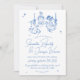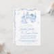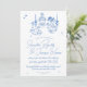 Retro Hand plockade Scribble Blue & White Bröllop Inbjudningar