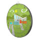 Detta hus i Retro Handflatan med Car Dart Board är ett halvsekel av modern älskare dröm. Den minimalistiska konstdesignen har en elegant orange och ett glashus med en dramatiskt saktande bockmarksform i tak. Den röda dörren förskjuter den orange stenplanteraren fylld med grön och den dekorativa turkosen cinderblock privacy skärm. Staggerade betongblock bildar perfektens gångbana genom lush, grönt gräsmatta. En vit karport erbjuder skydd för en turkos och en vit klassisk 1950-bil med fenor. Bilen är perfekt för att köra runt i grönten, rundade berg i avstånd. Kitschy-huset 1960 i stil liknar en skadlig oas från hetten, Handflatan Vår sol.